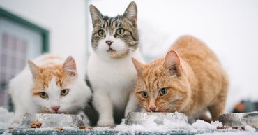 Egyértelmű, hogy élelemre és vízre a hideg időben is szüksége van az állatoknak. Ami fontos, hogy lehetőleg úgy időzítsd az etetést, hogy a macska a közelben legyen, máskülönben az élelem és a víz is megfagyhat. Emiatt a vizet rendszeresen cserélni kell, csakúgy, mint a háznál lakó, kinti vagy kijárós macskák számára.